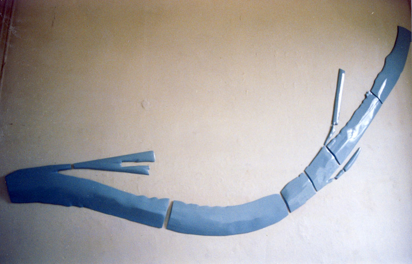 Der Rheinverlauf in Köln in der Verkleinerung 1 : 5000. MDF, Hochglanzlack, Länge ca. 1200 cm, 2001
