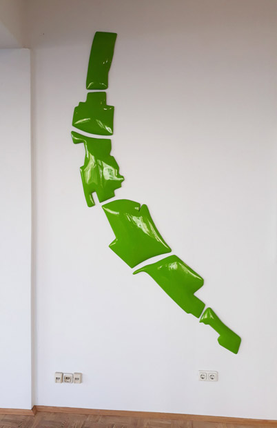 Der Kölner Grüngürtel im abstrahierten Modell 1 : 5000. MDF, Hochglanzlack, Höhe ca. 260 cm, 2008