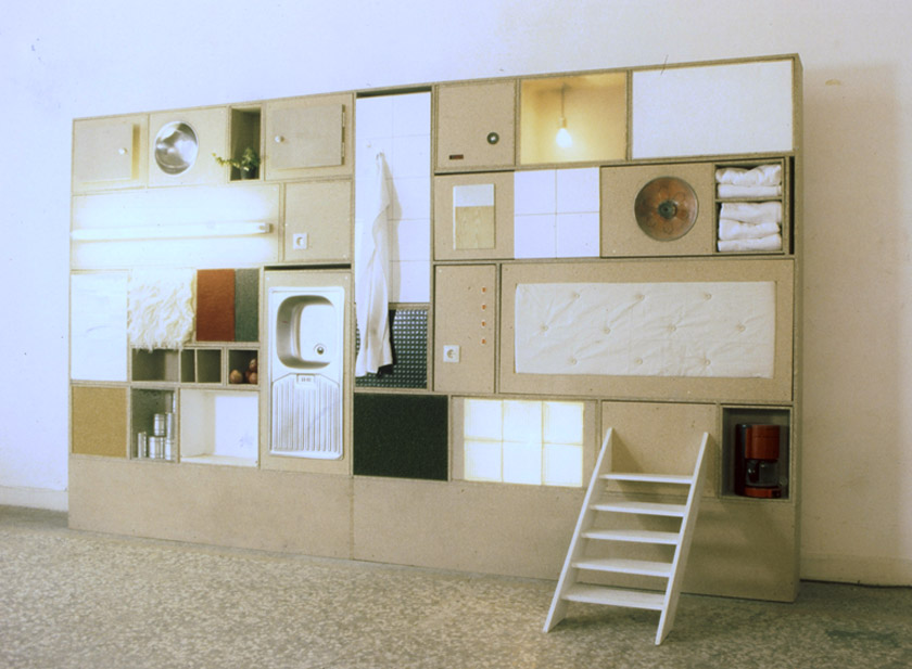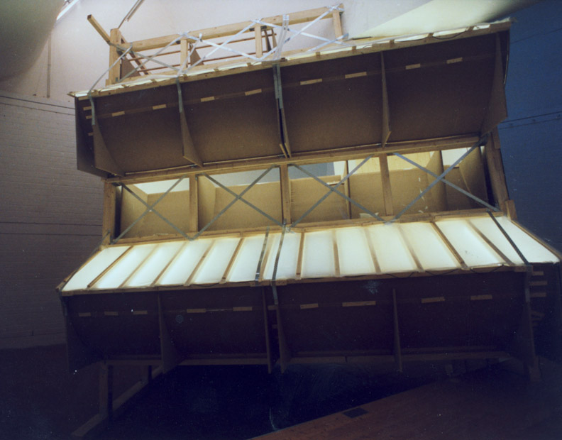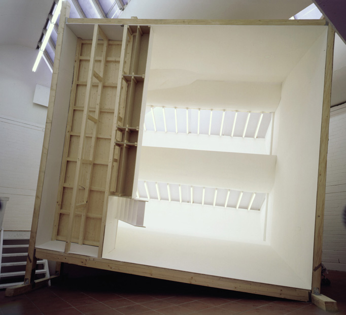 Ein Modell des Ausstellungsraumes im Verhältnis 1 : 2 um 90 Grad gedreht, ca. 600 x 600 x 600, Simultanhalle Köln, 1997